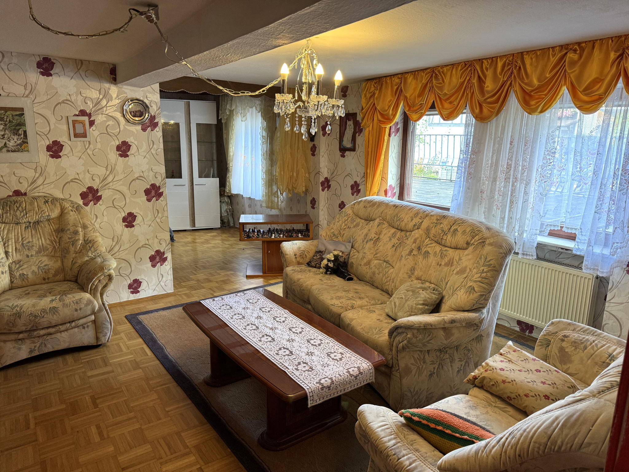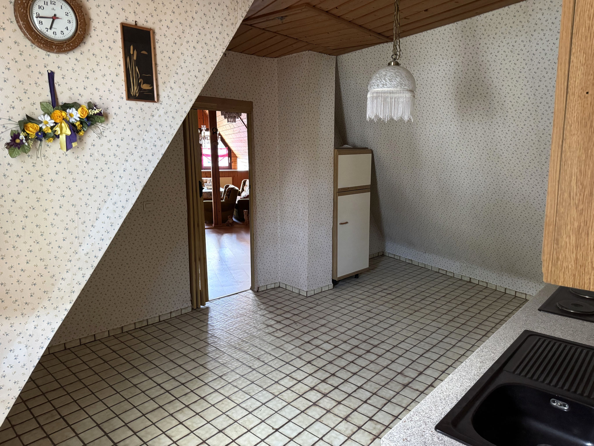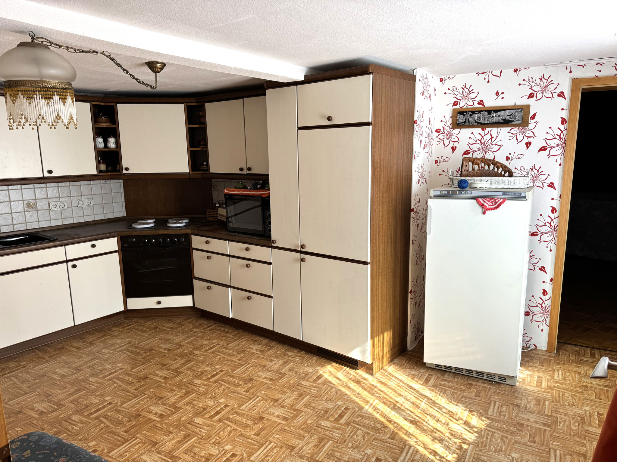 Insgesamt sind drei Einbauküchen vorhanden, wodurch sich flexible Wohnkonzepte realisieren lassen – beispielsweise Mehrgenerationenwohnen oder die teilweise Vermietung einzelner Bereiche. Eine Garage gehört ebenfalls zum Objekt.