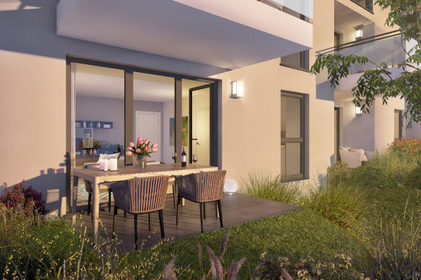 Die Wohnungen im Erdgeschoss verfügen über eine Terrasse und einen schönen, privaten Gartenbereich.