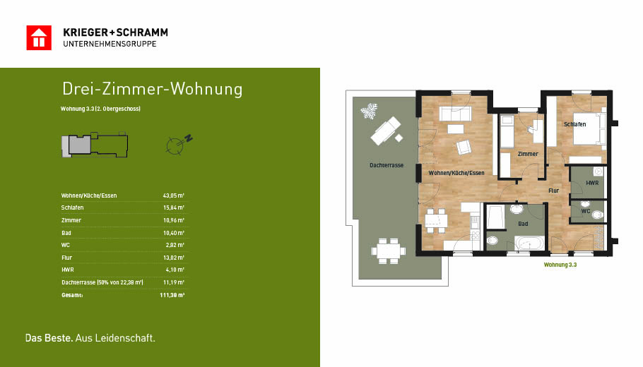 Zimmer-Dachterrassenwohnung mit ca. 111 qm Wohnfläche.
