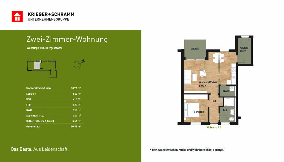 Somit umfasst dieses Projekt ein rundes Angebot für Alleinstehende, Paare und Investoren, die bereits heute schon an morgen denken.